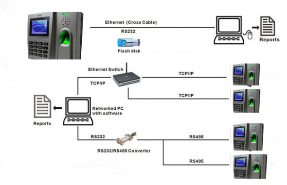 – Kết nối với máy tính qua cổng TCP/IP, USB