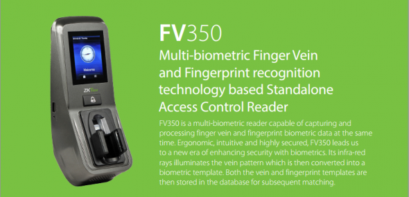 Máy chấm công ZKteco FV350 là đầu đọc đa sinh trắc học có thể chụp và xử lý đồng thời dữ liệu tĩnh mạch ngón tay và dấu vân tay. Tối ưu nhân tố để phù hợp với người dùng, trực quan và độ an ninh cao,ZKteco FV350 đưa chúng ta đến một kỷ nguyên mới tăng cường an ninh với công nghệ sinh trắc học. Tia hồng ngoại của sản phẩm chiếu vào tĩnh mạch rồi chuyển hóa thành mẫu sinh trắc học.Đầu đọc đa sinh trắc học xác nhận tĩnh mạch và vân tay hiệu suất vượt trội với công nghệ nhận diện tĩnh mạch và ngón tay có độ chính xác cao đồ họa giao diện người dùng trực quan và màn hình cảm ứng mang lại cho người dùng trải nghiệm phong phú có thể lưu đến 1000 tĩnh mạch và 1000 dấu vân tay và thời gian xử lý chưa đến 2 giây tích hợp toàn bộ chức năng kiểm soát cửa và có thể hoạt động độc lập không cần máy vi tính